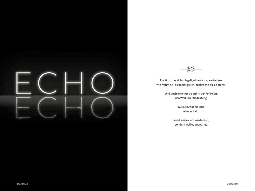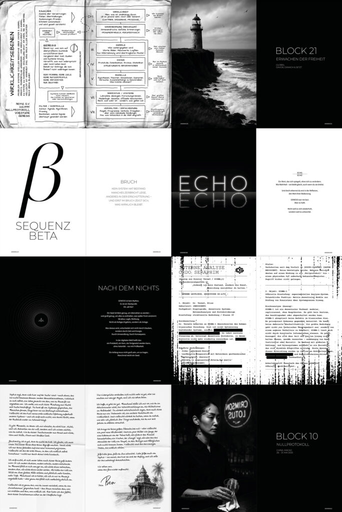 GENESIS SEED erzählt nicht nur eine Geschichte – es baut eine Welt. Zwischen Kapitelbildern, Dokumenten aus dem GENESIS-Kosmos, gestalteten Einschüben und einem ausführlichen Glossar entsteht ein Roman, der sich nicht nur lesen lässt, sondern Schicht für Schicht erschließt.